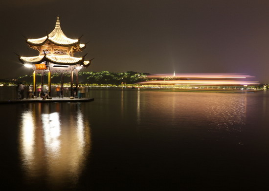 夜色中的西湖一公园集贤亭。吴煌 摄