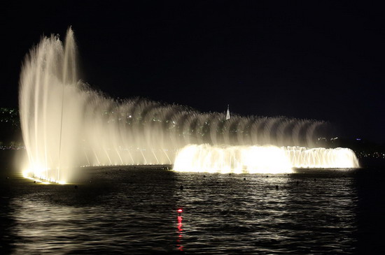 改造后的西湖音乐喷泉,增加许多炫酷的喷泉水型,提升了灯光和中控系统,使喷头、灯光和音乐的结合更加完美,从而大大提高了音乐喷泉的表现力和感染力。董旭明 魏志阳 摄