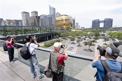 昨天,张淼森换了几十个角度,拍到了一张蓝天白云下,钱塘江烟波浩渺,钱江新城一派生机盎然景象的照片。“这张可以作为参赛的备选照片。”张淼森笑着说。