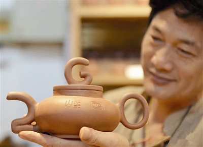 自从得知杭州要举办G20峰会,紫砂壶匠人徐成顺就酝酿着做一把以G20为主题的紫砂壶。“我是杭州人啊,想用自己的手艺为杭州做点事情。”为了让大家一目了然,徐成顺做的壶,壶嘴用“2”来表示,壶钮是“G”,“0”放在壶把上恰到好处。“我这个壶身做得很圆很大,也是有寓意的,一来表示一个地球一个家的理念,二来也象征着包容、有容乃大的境界。”