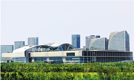 20杭州峰会主场馆目前已准备就绪。主场馆位于杭州国际博览中心,面积17万平方米,设有约20个功能区块,可同时容纳6000人。 本报记者 董旭明 摄