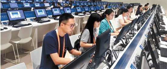 峰会新闻中心开放,钱报记者正在采写稿件。本报记者徐建国 摄