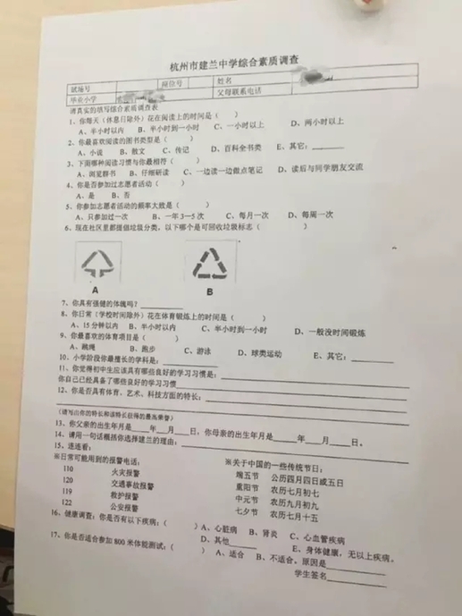 另一个老师则负责综合素质测试,问的问题五花八门——