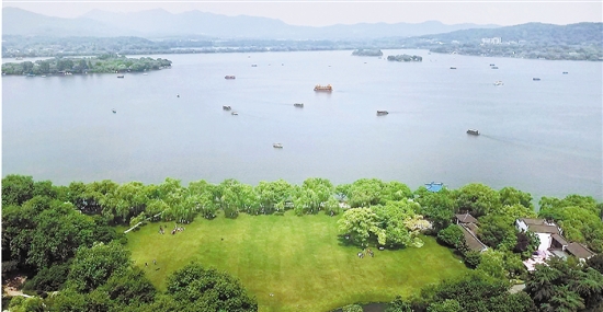 5月28日,端午小长假首日,杭州西湖柳浪闻莺公园一万平方米大草坪继“五一”小长假开放后,再次对游客开放。