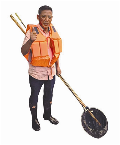 胡金林在打捞垃圾。