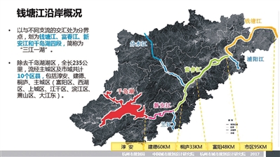 第三轮钱塘江规划在2012年发布,范围一下子从钱塘江沿岸,扩展到三江两岸,囊括了钱塘江、富春江、新安江。从城乡统筹视角开展规划,用一条绿道景观建设指引,把杭州、富阳、桐庐、建德紧密串联。