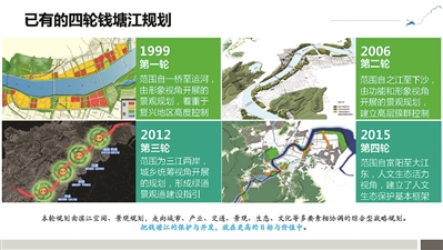 从1999年至今,围绕着钱塘江,杭州共开展了四轮规划,第五轮规划也在今年展开。每一轮规划对钱塘江来说意味着什么?有什么重点?又有哪些改变?让我们听杭州市城市规划设计研究院副总工程师黄文柳一一道来。记者 岳雁