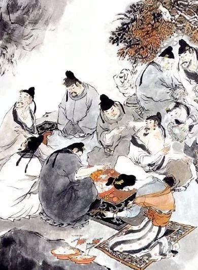 晋代文人陶渊明在《九日闲居》诗序文中说:“余闲居,爱重九之名。秋菊盈园,而持醪靡由,空服九华,寄怀于言”。这里同时提到菊花和酒。魏晋时期有了赏菊、饮酒的习俗。