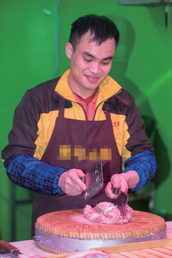 免费为顾客手工剁肉馅 帅哥小邹经常有大妈大姐介绍对象