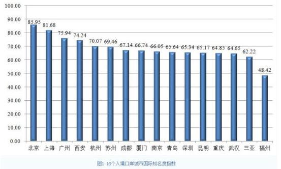 根据报告,在16个入境口岸城市国际知名度排名当中,杭州国际知名度指数70.07,排名第五。
