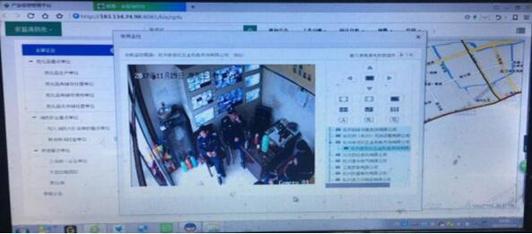 接着,谢德庆选择了一家企业,点击了旁边的小摄像头按钮,这家企业消控室的实时情况就出现在画面上了。
