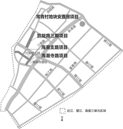 海潮寺路、海潮支路、凯旋路三期3条道路,主要集中在海潮寺一带。