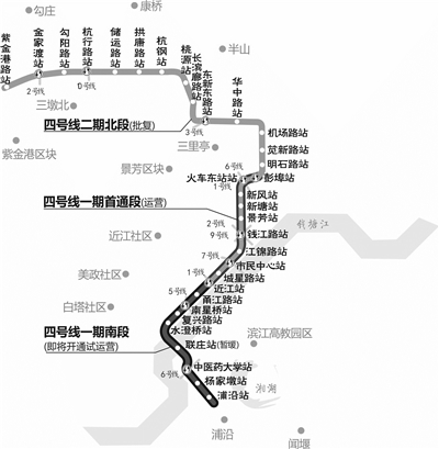 本报讯 杭州地铁4号线一期首通段(彭埠站-近江站)开通近3年,滨江、浦沿的居民期盼已久的4号线一期南段(甬江路站-浦沿站)也即将开通。