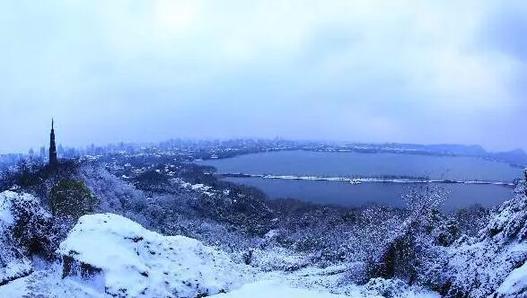 北高峰在杭州灵隐寺后,群山屏绕,湖水镜涵,上面的观景台,能让你将雪中的西湖盛景尽收眼底。