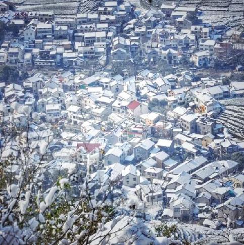 从高处看下去,杭州居然能看到这样的马蹄形盆地雪景,又是一番奇特的观赏体验。