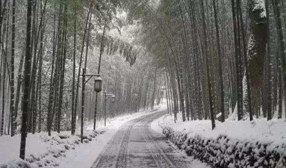 漫步在竹林小径,幽幽山道,竹海碧波,披上了一层雪白,别样精彩。