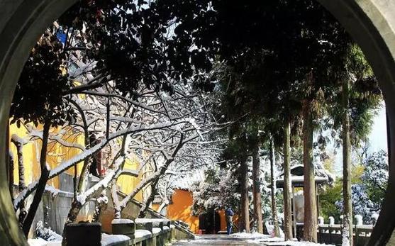 真迹寺在大雪的掩映下,也格外的充满了禅意。上到真迹寺,往右走是去往九溪方向,往左则是继续沿着五云山一路徒步,直到龙井或者上天竺下山。