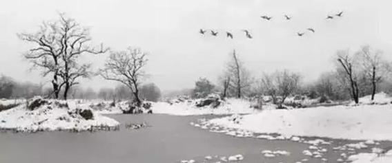 雪下在这里,积起来之后,很容易让人想到晚明文学家张岱的《湖心亭看雪》: