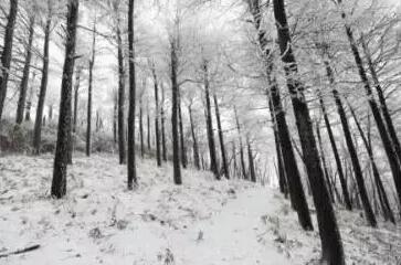 白雪覆盖了杏梅尖的松柏,却显得它愈发阳刚了。