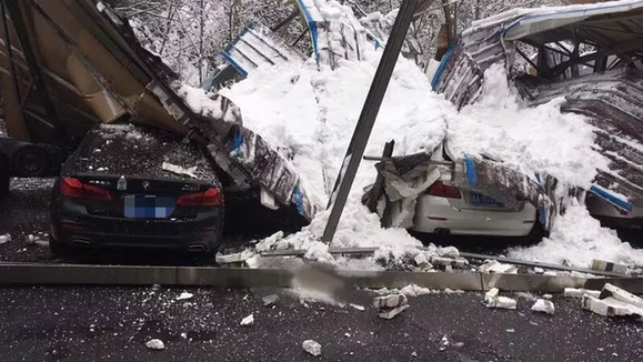 昨天下午,从广厦天都城训练基地传来消息,由于连日积雪,基地外的车棚被积雪压塌了,停在下面的车子全部遭殃。