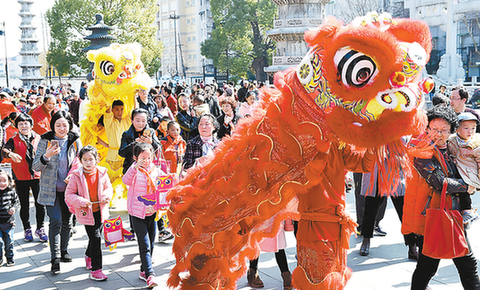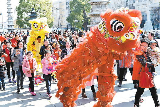 本报讯(记者 黄冉 通讯员 叶佳)舞狮、大头娃娃扭秧歌、腰鼓贺新春……昨天是正月十四,一场名为“湖墅之春·金犬报晓”的元宵民俗踩街活动在香积寺广场热闹拉开帷幕。