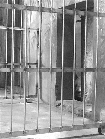 “成就”单独住在熊猫馆的内室,我们去看时,它趴在门口,一直盯着外面。记者 刘云 摄