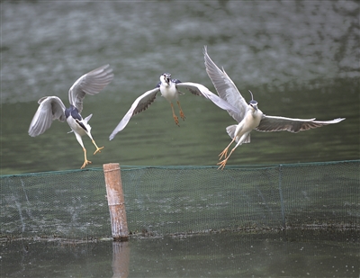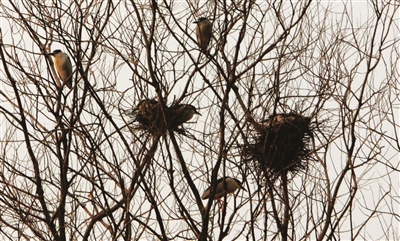 其他的鸟儿,比如夜鹭的远房亲戚小白鹭,也有看中这几个岛想来定居的,哪里还来得及?好一点的地段,老早被夜鹭们瓜分光了。其他鸟只能在边上地段差的几棵树上试探性地安几个巢,就这样,夜鹭有时也不大高兴,管你是不是亲戚,打场架儿再说!打得过,那就让你留下来。