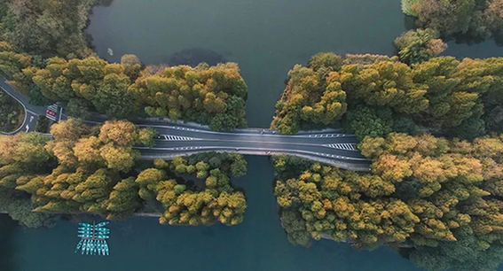 第五站是苏堤,杭州的春天最早出现在苏堤,两岸的杨柳随风轻轻舞动,清风徐来,枝叶舒展。