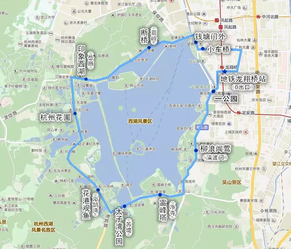 从“环西湖夜游定制专线”的地图上看来,这条专线将西湖最佳的夜景都承包了,每一站都各有各的情致~