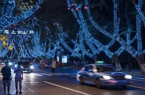 第二站是坐落在南山路上的一公园,南山路是杭州夜景最美的一条街,火树银花,光影交错,让人一不小心就迷失在灯光的海洋里。