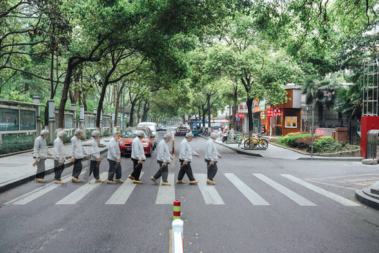 来自沈阳建筑大学的俞晨涛有他的方式。他用逐帧拍摄的方式,通过记录在斑马线上的轨迹,展现车静止、人行动的感觉,再拍摄出相关的符号来增强表现力。他的一组摄影作品极具现代感,镜头语言也很巧妙,如同变魔法一样。