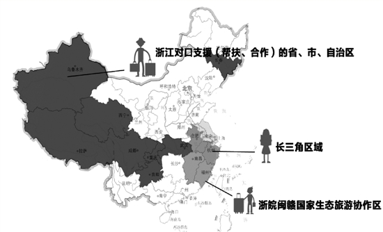 浙江对口支援(帮扶、合作)的省、市、自治区,包括:四川省、重庆市、贵州省、吉林省、湖北省、西藏自治区、新疆维吾尔自治区、青海省。