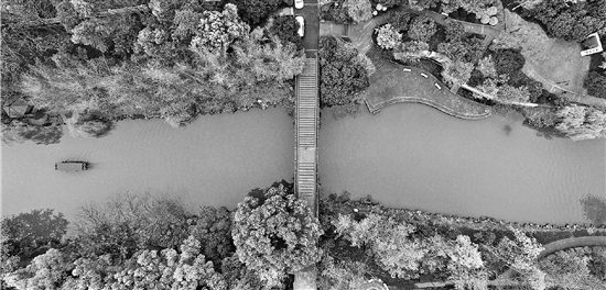 春天绿荫环绕的杭州东河。 本报记者 吴煌 摄