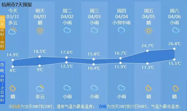 杭州的春天,晴雨相间才是常态,下周二到周四雨水又将唱主角,直到下周五我们才能再次见到阳光。