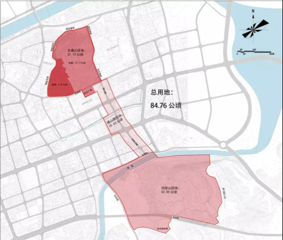 范围边界:北至衣锦街、南至石镜街,东、西边界为塔山路和功臣山路外扩 50 米(局部 100 米)。