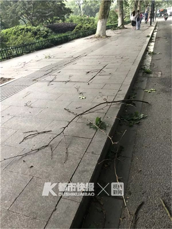 北山街,树枝被风刮落。首席记者 陈中秋 摄