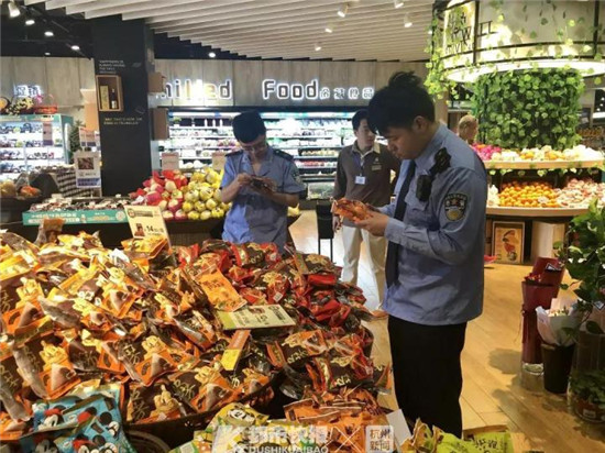 凯旋市场监督管理所执法人员在绿地众选超市检查粽子等食品