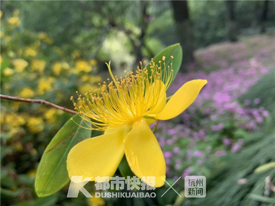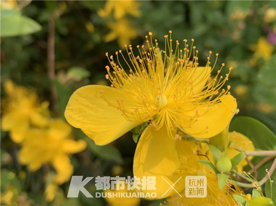 “连雨不知春去,一晴方觉夏深”,不知道是不是感受到了空气里的温热,西湖边的金丝桃也一片片盛开了。