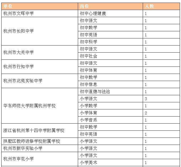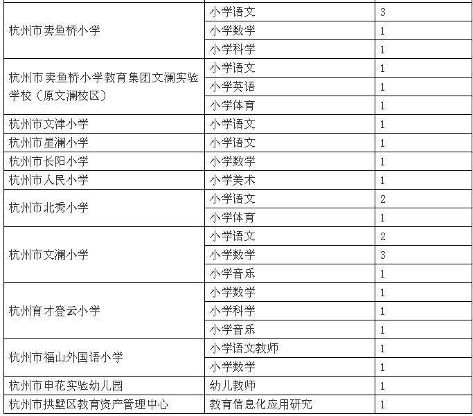杭州市拱墅区教育局所属杭州市拱墅区教育研究院等事业单位,因工作需要,公开招聘专任教师53名,具体岗位如下。