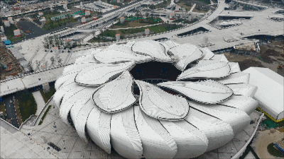 它就是杭州奥体博览城网球中心,紧挨着主体育场“大莲花”,同样采用“花瓣”设计造型,大家亲切地称呼网球中心为“小莲花”。