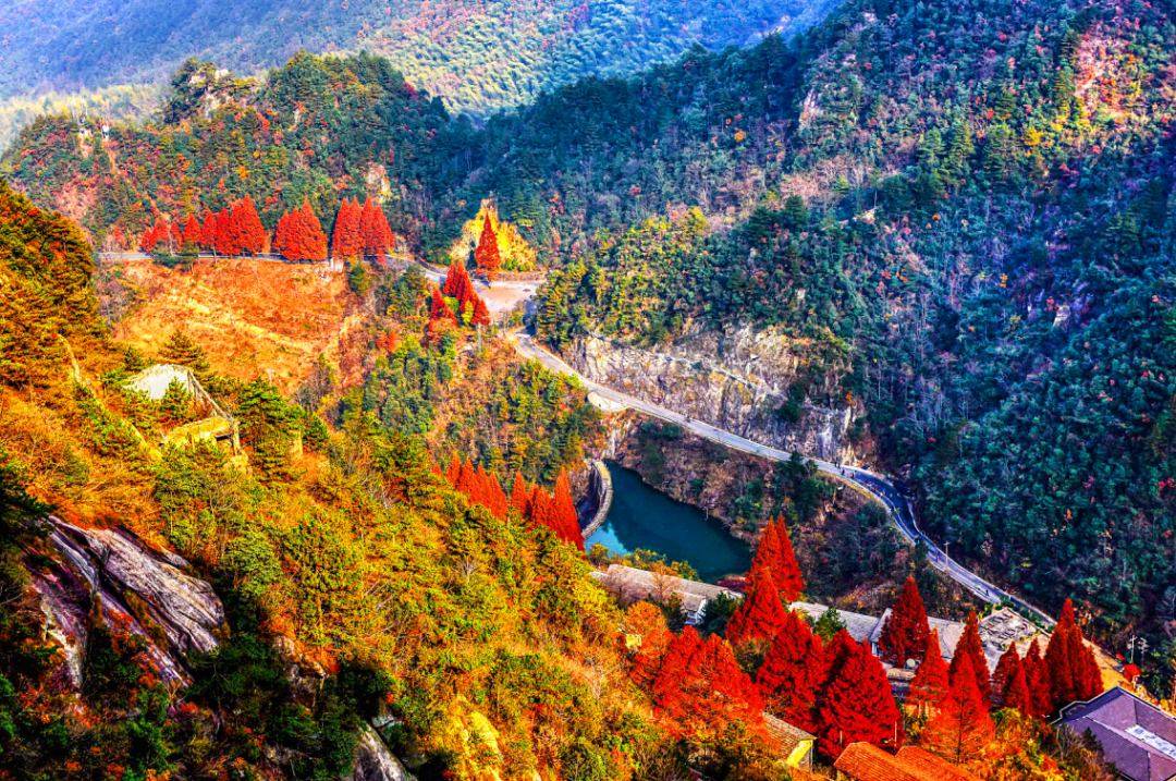 秋季的天目山层林尽染,原本翠绿的山景如洒了一沱油彩,层次感更显分明。就如苏轼所说:“一年好景君须记,最是橙黄橘绿时。” 地址:杭州市临安区天目山镇 门票(供参考):西天目山136元/人;东天目山98元/人 ||大明山-满山红叶染尽秋天
