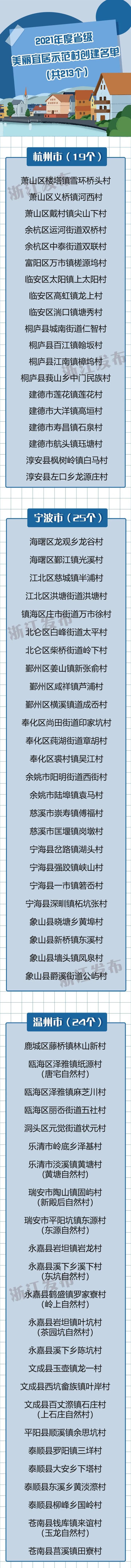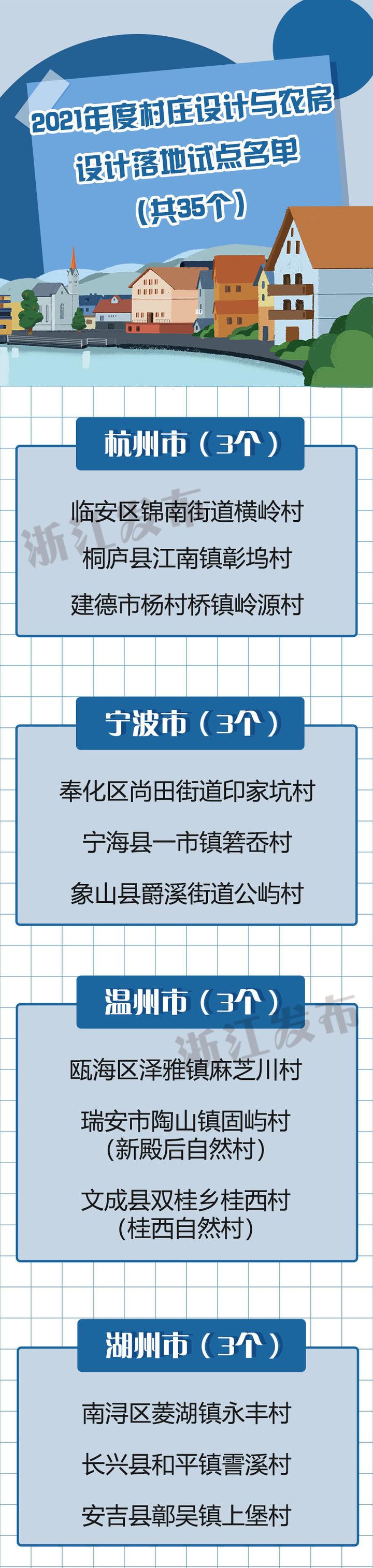 近日,浙江省城乡环境整治工作领导小组美丽宜居村镇示范办公室、浙江省住房和城乡建设厅公布了2021年度省级美丽宜居示范村创建及传统村落风貌保护提升和村庄设计与农房设计落地试点名单。详情↓↓