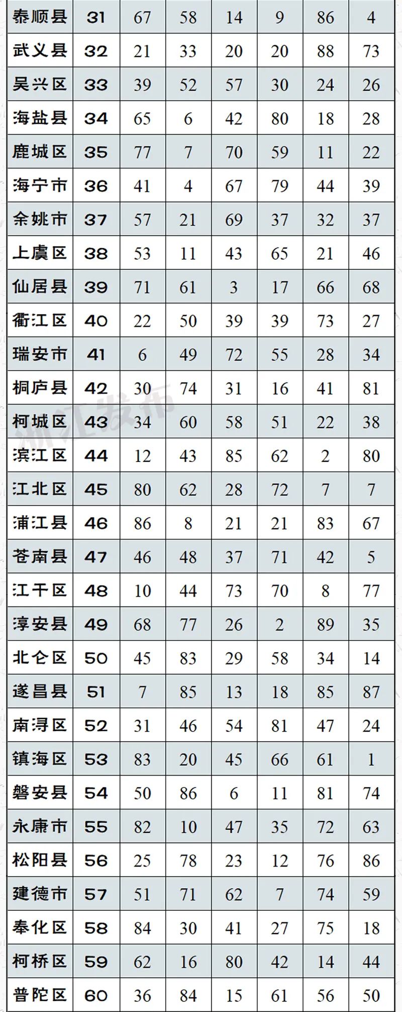 指数计算结果保留两位小数,当两地区保留两位小数后数值一致时,以实际指数值决定排序,即视小数点后几位数值大小决定排序。