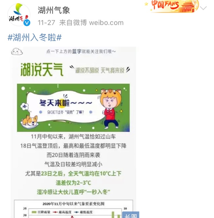 别急,今年的冬天已经在路上了。据湖州市气象局结合气象资料分析,湖州市11月23日入冬,嘉兴市也在11月28日官宣入冬。