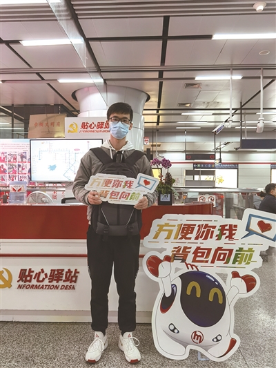 乘客以“背包向前”的姿势在贴心驿站打卡 图片由杭州地铁提供