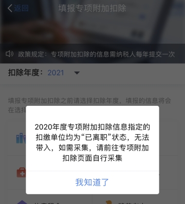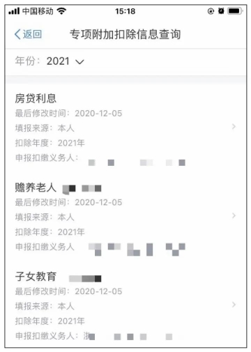 如果在2020年有了新的专项附加扣除,则要从首页的“申报专项附加扣除”开始填写,填写之前按提示准备好相应的资料。用户可以在确认之后在App中点击首页-专项附加扣除信息查询-选择扣除年度“2021”-查看已提交的信息,如有变动可以选择作废或修改。