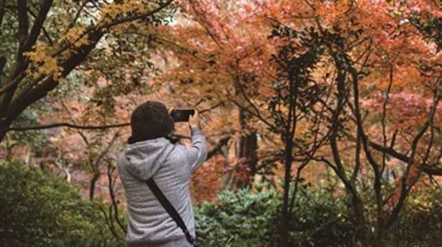 杭州植物园,市民被红枫吸引。 记者 夏阳 摄
