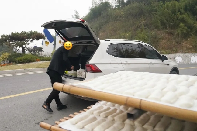 现场看到不少人开着车来买年糕,一买就是后备厢装满的。现成的20元装、30元装两种,摊到单价是粳米年糕3.2元/斤,三七年糕3.5元/斤,糯米年糕3.7元/斤。
