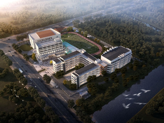 前进初级中学项目总用地78亩,总建筑面积5.5万平方米,一期按24个班级的初级中学I类标准设计。