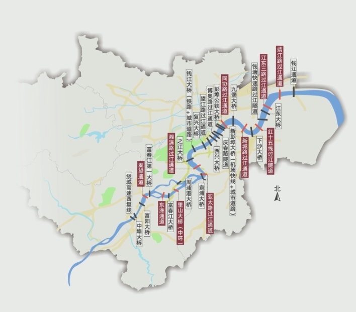 吴兴认为,从过江通道的规划布局来看,钱塘新区大江东的河庄一带、主城区钱江两岸、三江汇地区以及富春江富阳城区段,过江通道都比较密集。